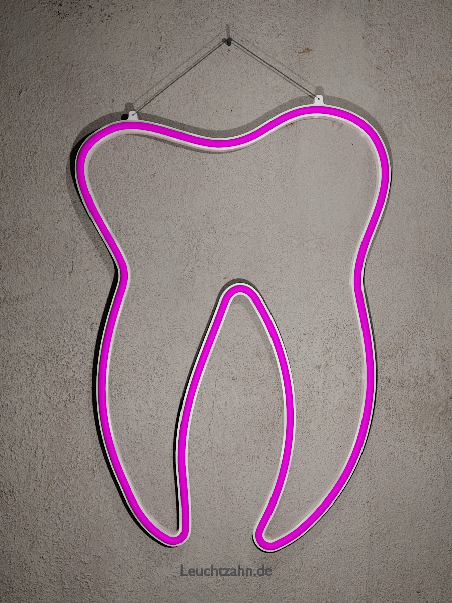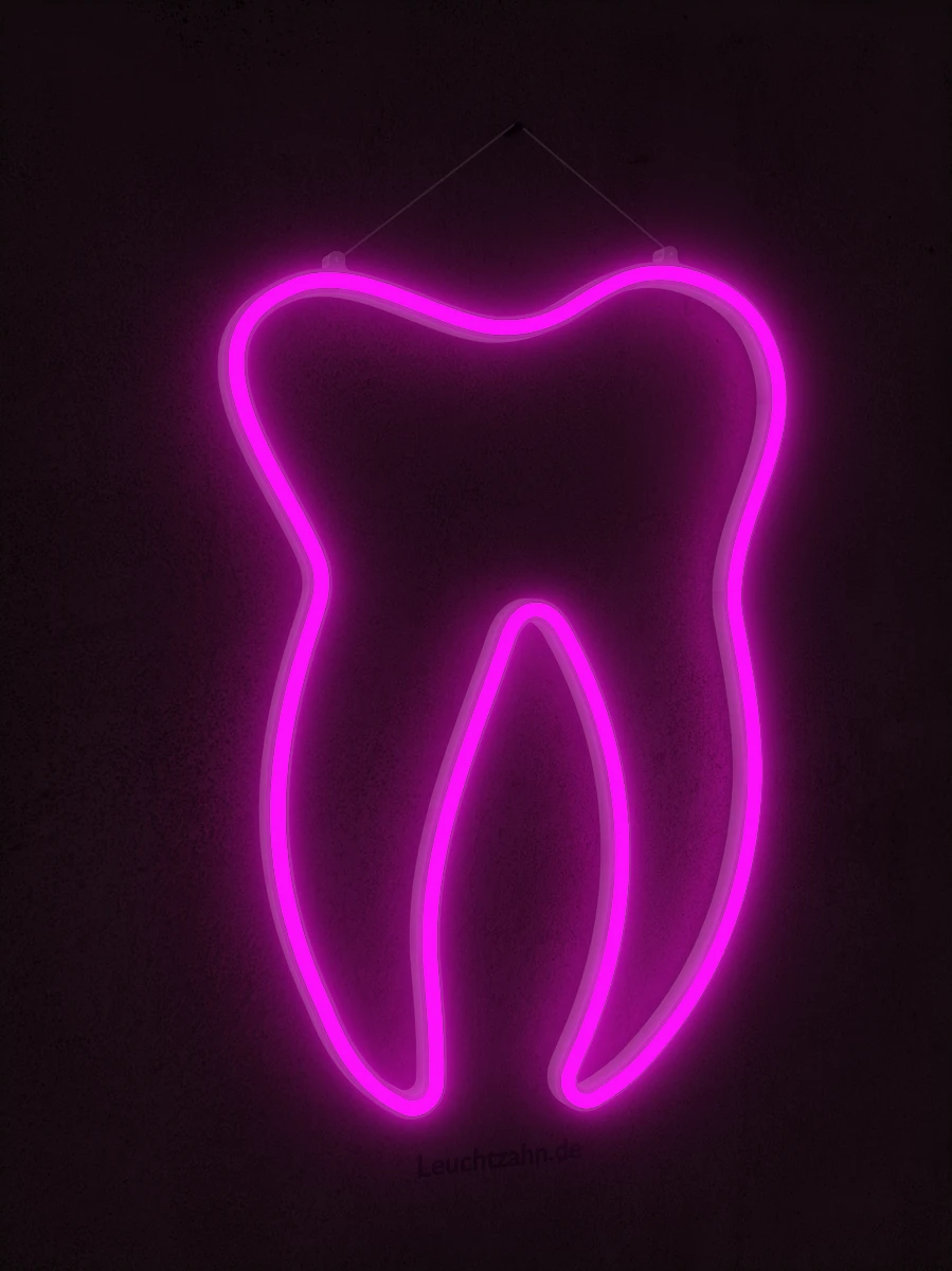 Leuchtzahn in klassischer Form, Neoneffekt durch moderne und stromsparende LED Beleuchtung.